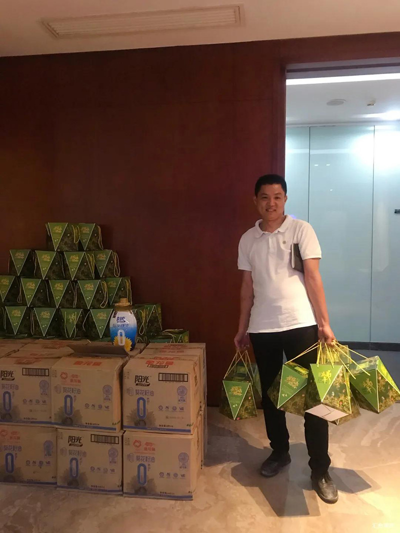 每逢端午节来临,所有员工都会感受到公司浓浓的关爱,今年也不例外,福利发放工作在公司组织下有条不紊地进行,充分彰显了公司送温暖工作的实效,一盒盒装满闽南味道的烧肉棕礼盒和沉甸甸的食用油,陆续发放到“汇合家人”手中,让大家感受到了端午节的浓郁气氛。
