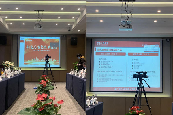耕耘更知韶光贵,不用扬鞭自奋蹄。为更好地谋划公司来年发展,提前规划2022年度经营工作,确保公司稳健高效运营。2021年12月30日,汇合装饰公司“2022年度企业经营管理会议”在厦门京僎酒店召开。会议全面总结公司2021年度经营管理情况,深入分析当前行业发展形式,研究部署2022年重点工作。公司总经理、各职能部门负责人及各项目负责人等共计50余人参会。同时,省外项目负责人也在通过直播会议视频,线上参会。