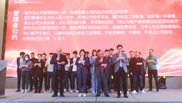 “新变局、重聚焦、共发展”汇合装饰管理人层与公司所有员工一起宣誓,一起同心,一起携手共同发展!