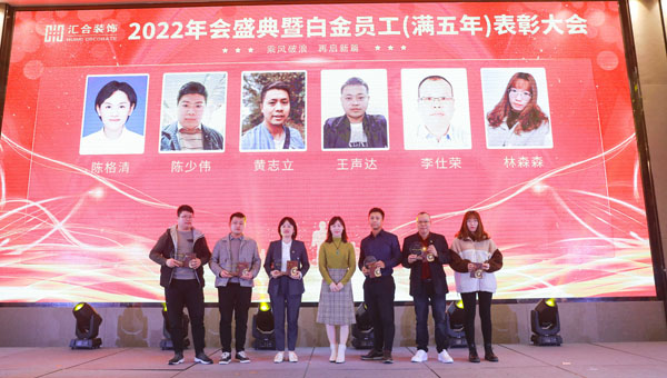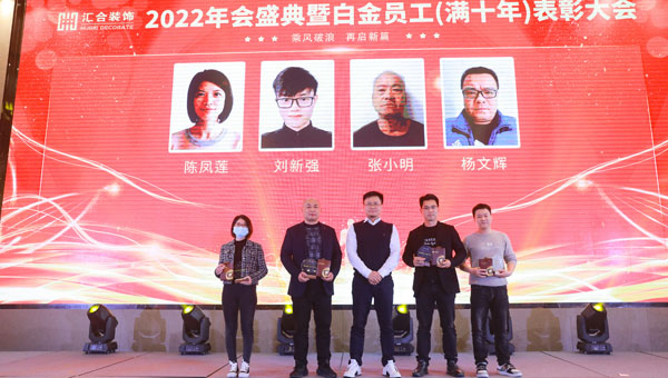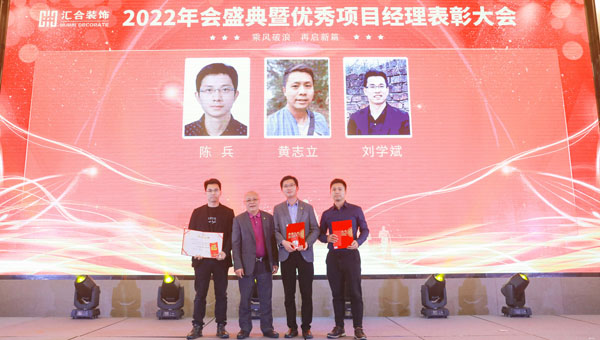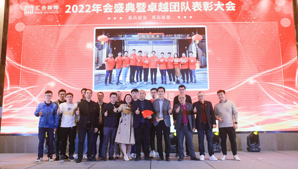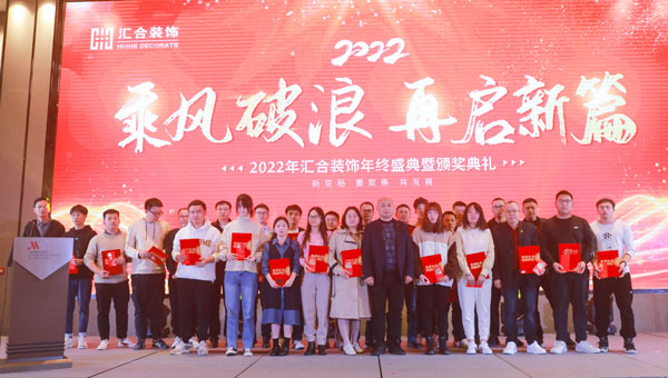 会议结束后,紧接着“乘风破浪 再启新篇”2022年汇合装饰年终盛典暨颁奖典礼,在当晚盛大举行。“汇合人”欢聚一堂,共话新年。