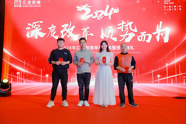 回望2023年,公司涌现出一批踏实能干、尽职尽责、默默奉献、勇于创新、成绩突出的优秀个人。他们是公司的主力军,是勤勉尽职的守护者。汇合装饰的发展与壮大,离不开每一位伙伴的辛勤付出。年会上,公司举行了庄重的表彰仪式,以此表彰他们的贡献和努力。