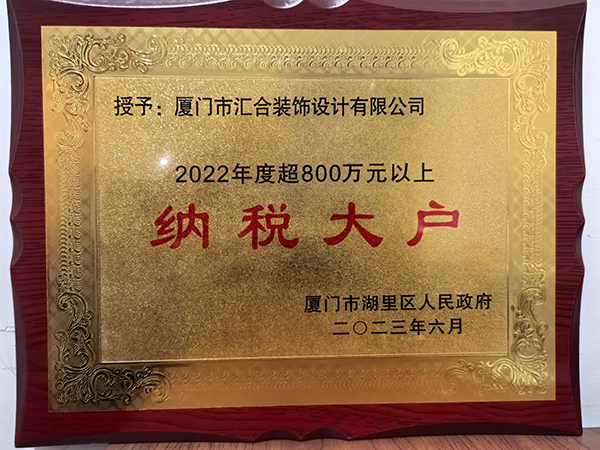 荣获“2022年度800万元以上纳税大户” (厦门市湖里区人民政府“纳税大户”)称号