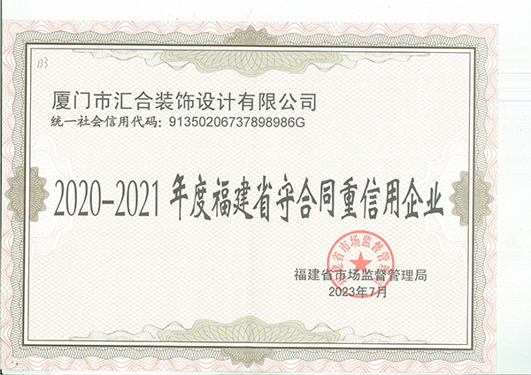 荣获“2020-2021年度福建省守合同重信用企业”称号