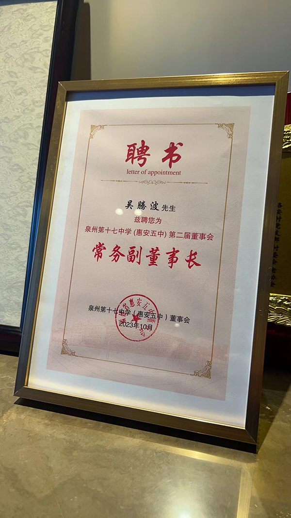 泉州第十七中第二届董事会常务副董事长,捐奖教学基金捐款10万元