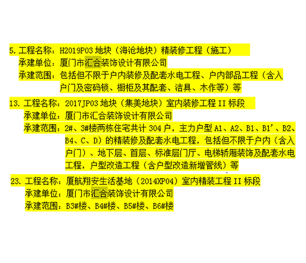 H2019P03地块(海沧地块)精装修工程(施工),2017JP03 地块(集美地块)室内精装修工程Ⅱ标段,厦航翔安生活基地(2014XP04)室内精装工程II标段,荣获2023-2024年度中国建筑工程装饰奖