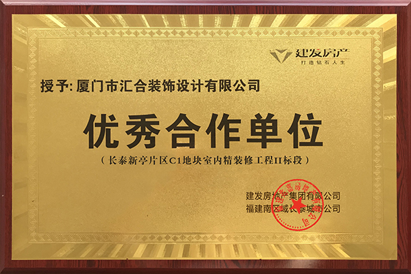 建发福建南区域长泰新亭片区C1地块室内精装修工程II标段荣获“优秀合作单位”